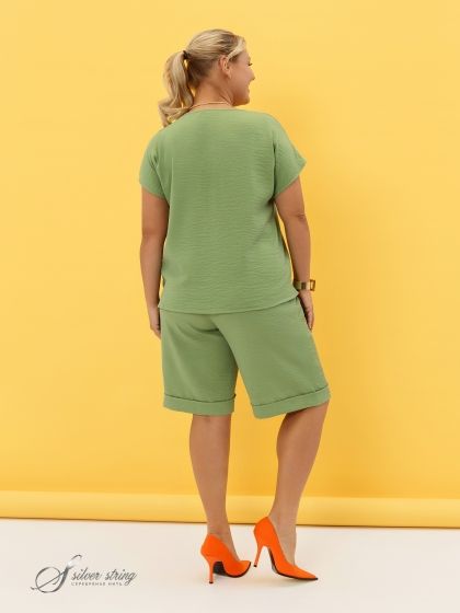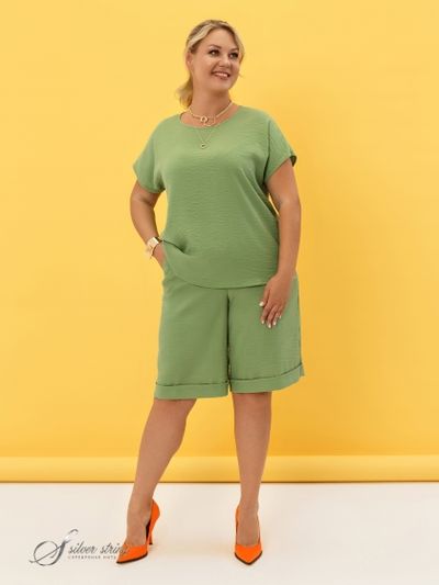 Стильные шорты прямого силуэта выполнены из фактурной смесовой ткани с «крэш» - эффектом. Изделие длиной до середины колена. В боковых швах обработаны удобные карманы. Отличительной чертой модели является эластичный пояс и отсутствие застежки. Помимо эластичной тесьмы по поясу проходит шнур-затяжка. Покрой изделия позволяет обеспечить максимальный комфорт и безупречную посадку. Шорты сделают более разнообразными Ваши летние образы.