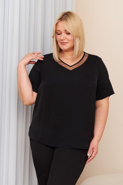 Однотонная блузка основа для классических образов современных женщин, которая прекрасно подходит для создания как повседневного, так и коктейльного образа. Блузка выполнена из качественной, шелковистой, приятной к телу струящейся ткани, которая не мнется, не пилингуется и сохраняет внешний вид долгое время, а значит, будет радовать Вас не один сезон. Фишкой топа является декоративный элемент вставка из сетки. Детали: V- образный вырез горловины, прямой силуэт, разрезы в боковых швах, короткий рукав. Модель представлена в двух цветах классическом черном и нюдовый бежевый.