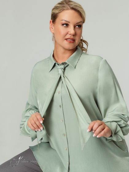 Эффектная Блузка из шелковистой ткани - это сочетание элегантности и стиля! Модель с изысканным воротником на стойке со съемным галстуком и застежкой на пуговицы. Объемные рукава с густой сборкой понизу и высокой манжетой добавляют изделию особого шика. Регулировка обхвата манжеты с помощью пары пуговиц позволяет подобрать идеальную посадку. Эта Блузка отлично подойдет для создания элегантного образа на каждый день и для особых случаев.