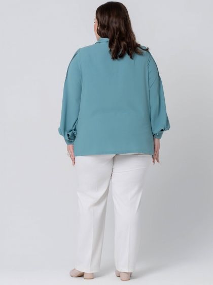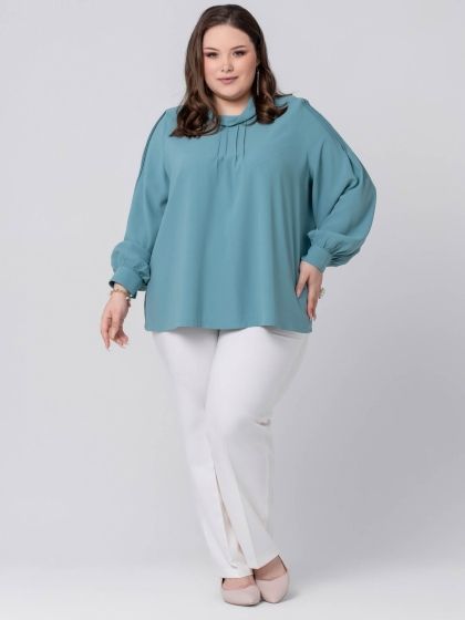 Эффектная блузка в стиле «Casual» из эластичной смесовой ткани - это сочетание элегантности и стиля! Модель прямого силуэта, без застежки, с длинным, объемным рукавом с притачной манжетой. Регулировка обхвата манжеты с помощью пары пуговиц позволяет подобрать идеальную посадку по руке. Горловина оформлена мягким воротником-хомутик. По центру полочки и по верху рукава застрочены изящные вертикальные защипы. Модель олицетворяет собой притягательность классики в современном её звучании. Эта блузка идеально подходит для создания элегантного и женственного образа!