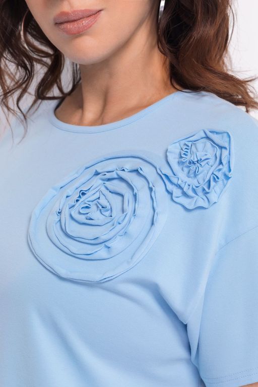 Свитшот прямого свободного силуэта из премиального хлопкового полотна с эластаном. Оригинальная отделка в виде декоративного объемного элемента. Длина изделия 66 см.