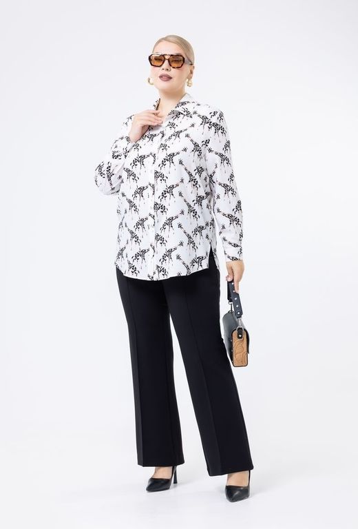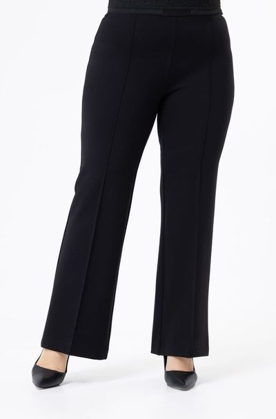 Брюки клёш с застроченными стрелками выполнены из трикотажного полотна. Комфортный пояс на резинке.