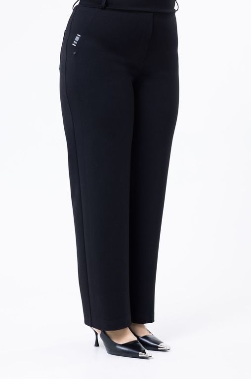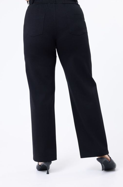 Прямые брюки выполнены из трикотажного полотна. Комфортный пояс на резинке. Без карманов.