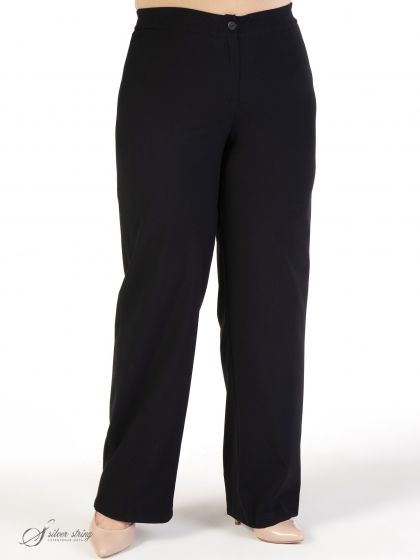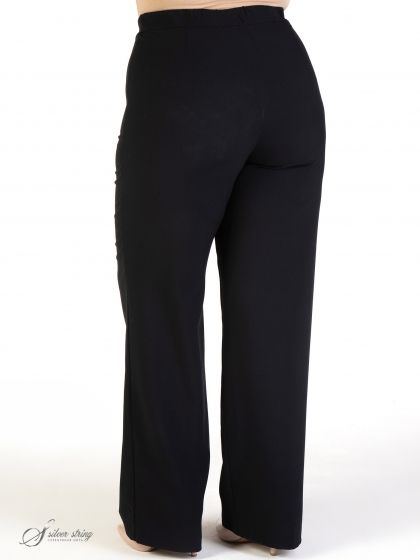 Ультрамодные брюки, расширенные от бедра к низу, выполнены эластичной смесовой ткани с большим содержанием натурального волокна. Тесьма-резинка проходит по всему контуру пояса и достигает линии застежки на передних половинках брюк. Чтобы избежать скручивания резинки её закрепили на поясе. Брюки, благодаря правильному крою, идеально подойдут для дам нестандартных размеров. Модель отличается правильной посадкой и прослужит не один год.