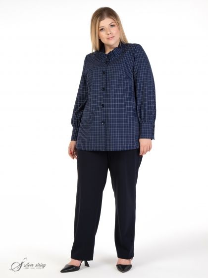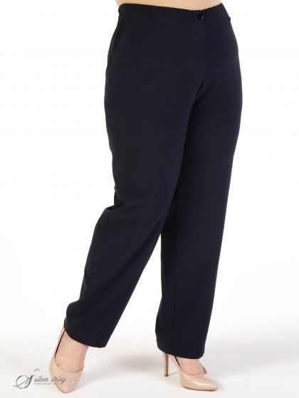 Классические прямые брюки, стандартной длины, выполнены из эластичной смесовой ткани с высоким содержанием натурального волокна. На передних половинках брюк обработаны ложные карманы с имитацией листочки. Тесьма-резинка проходит по всему контуру пояса и достигает линии застежки на передних половинках брюк. Силуэт брюк великолепно стройнит фигуру, придавая легкость и динамику Вашему образу. Эта элегантная модель будет отлично смотреться как в офисных, так и менее формальных комплектах.
