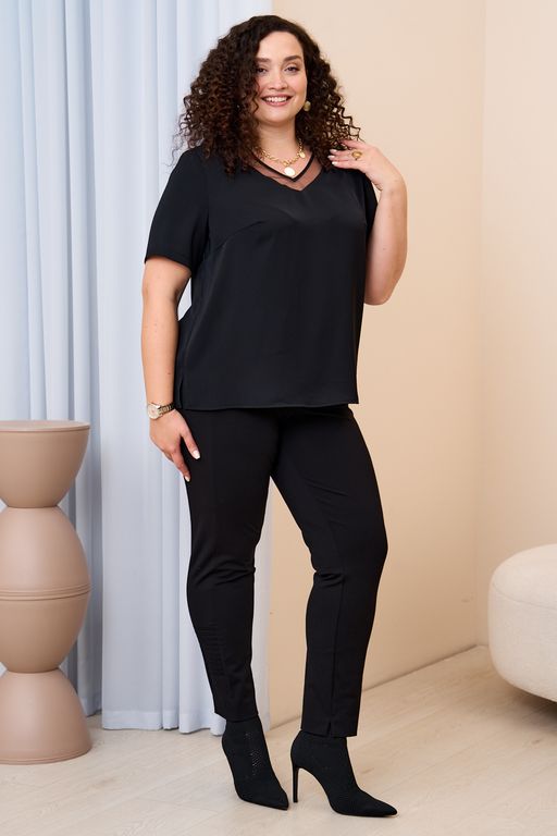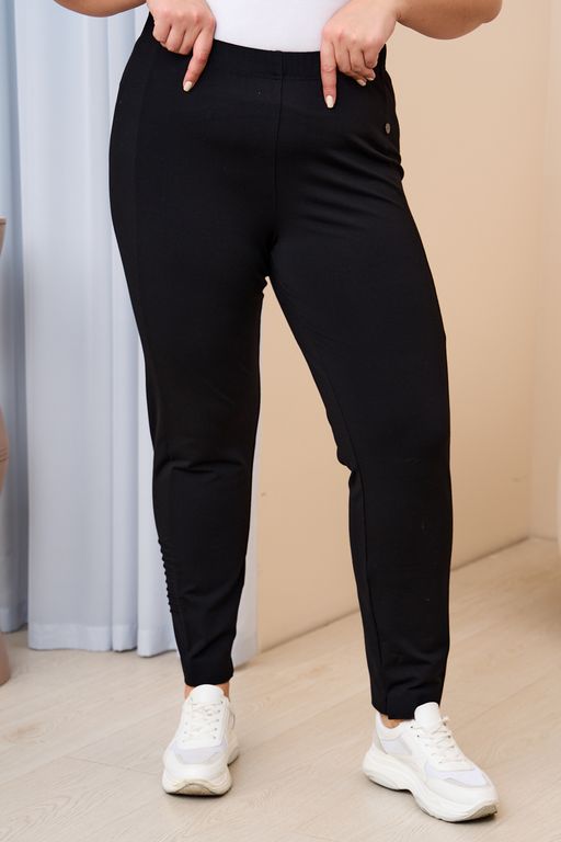 Классический силуэт брюк. Лампас по боку вытягивает силуэт, декоративный элемент по низу брюк по лампасу в виде защипов придают изюминку классическим брюкам. Идеальный выбор для комфортной и стильной повседневной носки. Детали : Брюки на резинке, без застёжки, по низу брюк с внутренней стороны разрезы.
