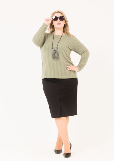 Джемпер полуприлегоющего силуэта выполнен из трикотажного полотна. Кулон в комплекте.
