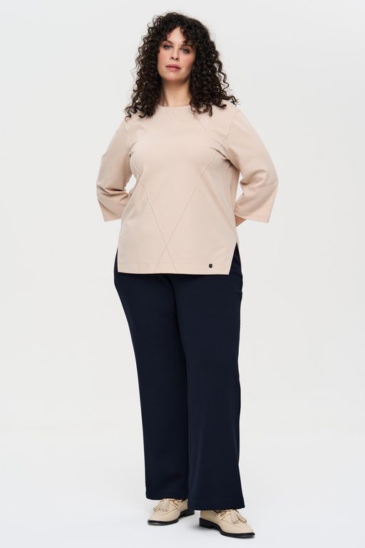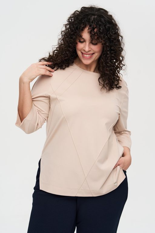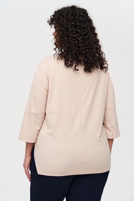 Оригинальный джемпер с эффектными защипами и рукавами 3/4. Качественная вискозная ткань приятна к телу, идеально держит форму и не деформируется со временем. Модель прямого кроя, со спущенной линией плеча, свободным рукавом, округлая горловина с планкой, декоративными защипами по переду. Необычный джемпер станет ярким акцентом при создании неформальных городских образов, а так же элегантно выглядеть на официальных мероприятиях. Джемпер представлен в двух цветах бежевом и сиреневом.