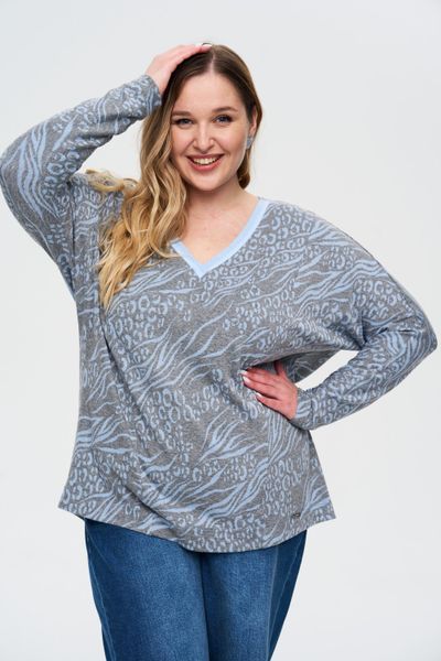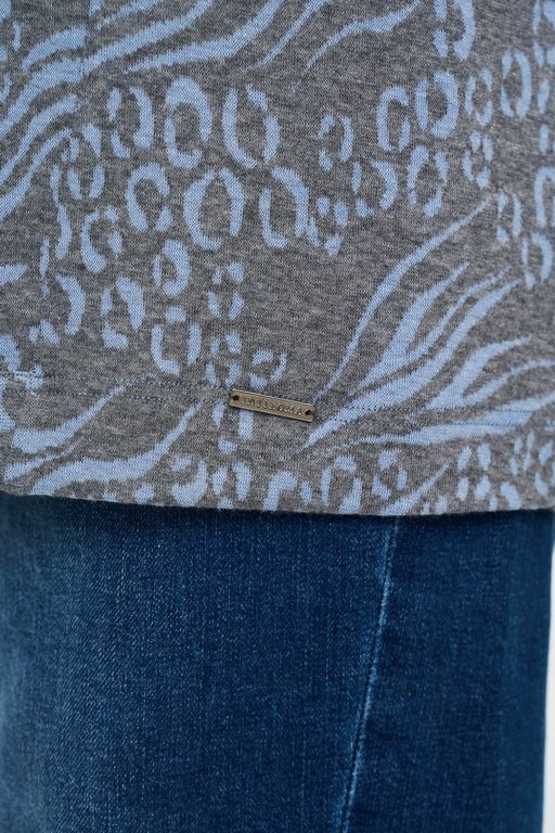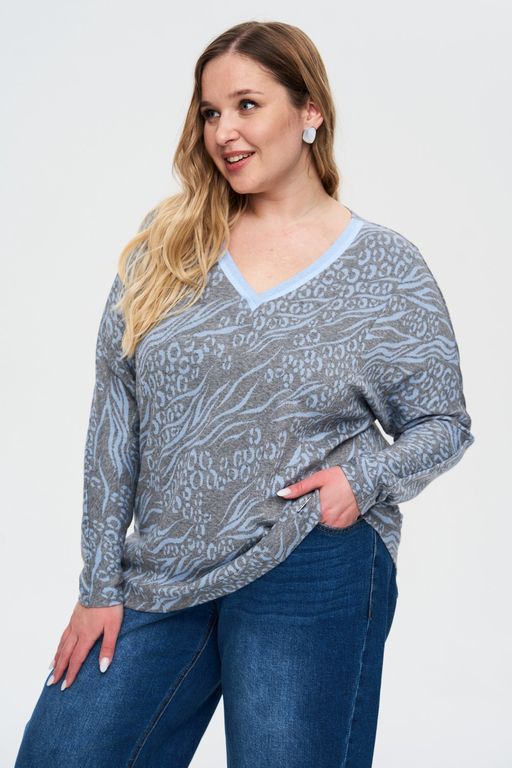 Трикотажный джемпер с длинным рукавом для тех, кто привержен эстетике минимализма и предпочитает в моде комфорт. Характер монохромного анималистического жаккардового рисунка вносит дополнительный стилевой контраст в общий мягкий силуэт.