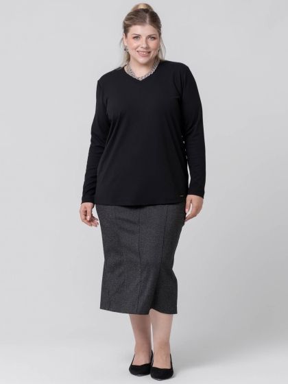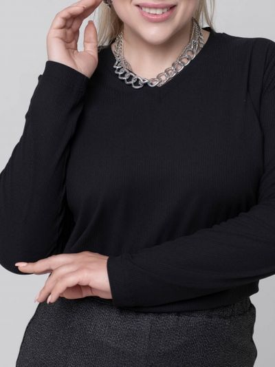 Стильный джемпер прямого силуэта выполнен из пластичного трикотажного полотна с фактурной выработкой - «рубчик». Модель с длинным втачным рукавом и У-образной горловиной. Линия горловины обработана трикотажной планкой. Крой модели отлично маскирует проблемные зоны, стройнит фигуру и дарит ощущение свободы и комфорта. Изделие прекрасно впишется в Ваш гардероб и станет незаменимым при создании разнообразных комплектов.