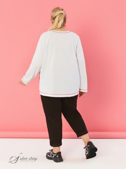 Удобный лонгслив выполнен из мягкого хлопкового трикотажного полотна. Круглая линия горловины обеспечивает комфортное ношение, а контрастная строчка по низу изделия, рукавам и вдоль горловины добавляет стильный акцент. Вставка с ярким рисунком привлекает внимание и придает изделию уникальность. Декоративная накладная деталь на полочке, с контрастным термо-принтом, делает этот лонгслив не только комфортным, но и модным.