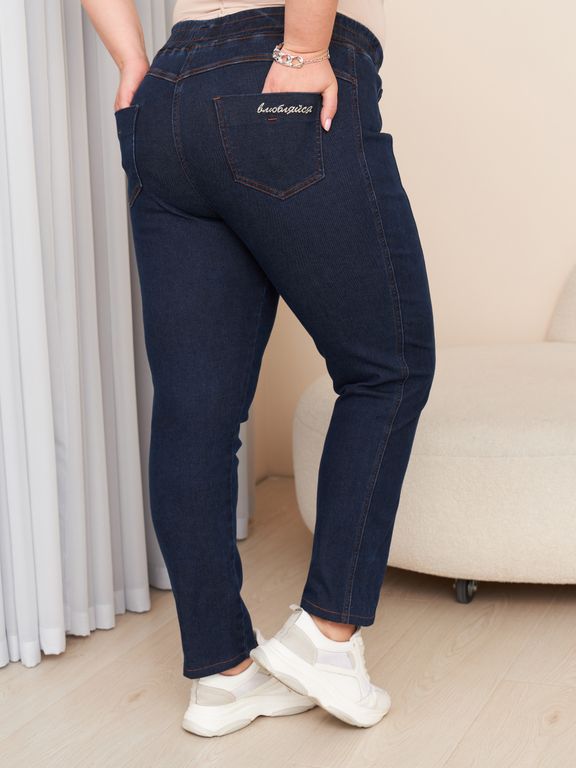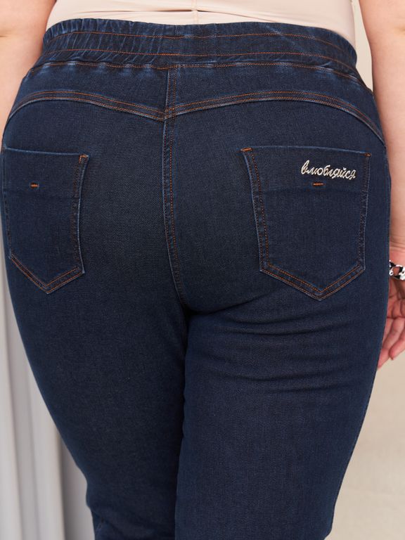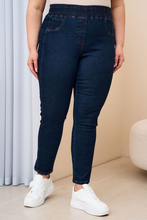 Джинсовые джеггинсы идеально сядут на любой тип фигуры. Стильные джеггинсы отлично вписываются в повседневный гардероб, идеально подходят на каждый день и позволяют создавать много интересных образов. Хорошо тянутся и позволяют утянуть лишние сантиметры. Детали: пояс на широкой резинке, без застежки, по переду иммитация карманов, по боковому шву широкий ломпас из основной ткани, по низу нет молнии, сзади фигурная кокетка и накладные карманы с вышивкой. Модель представлена в двух расцветках черный и синий.