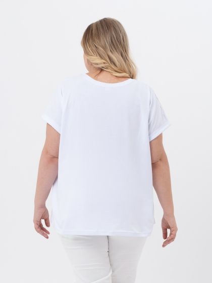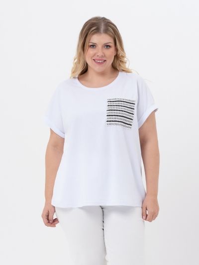 Удобная трикотажная футболка прямого силуэта с круглой линией горловины и коротким рукавом покроя кимоно. Модель выполнена из качественного, натурального трикотажного полотна. Горловина обработана узкой планкой. Нагрудный карман из отделочной ткани претендует на роль основного акцента в образе. Футболка является самым демократичным видом одежды в мире, её носят люди всех возрастов, национальностей и достатка. Это базовая вещь, которая станет незаменимой при создании разнообразных комплектов с жакетами, блузонами и кардиганами.