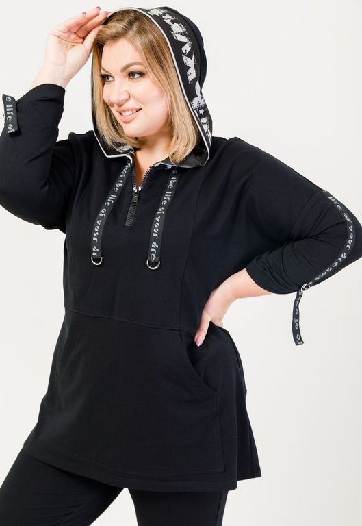 Худи полуприлегающего силуэта из футера. Спущенное плечо, втачной рукав. Длина рукава регулируется.