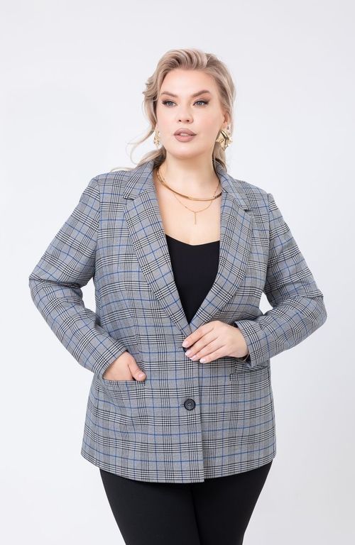 Жакет прилегающего силуэта выполнен из ткани с принтом "гусиные лапки". Два кармана. Модель с подкладом.