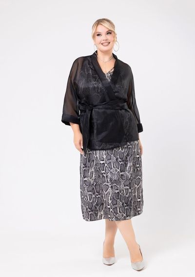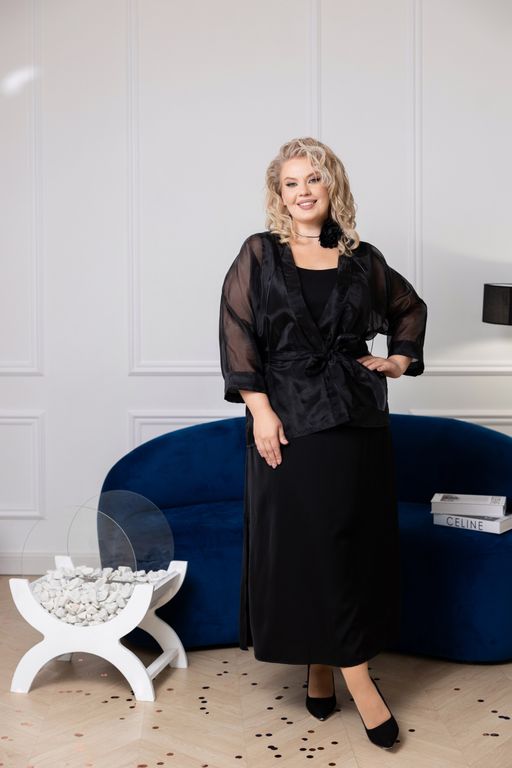 Жакет прямого силуэта выполнен из органзы. Рукав цельнокроенный.