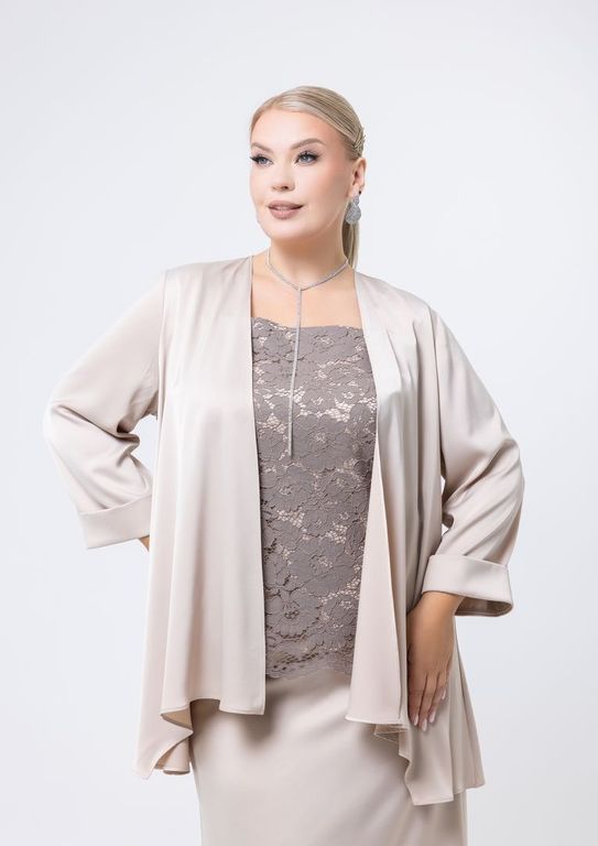 Жакет силуэта "трапеция" выполнен из итальянского шёлка. Рукав втачной, Фигурный низ. Без застёжки.