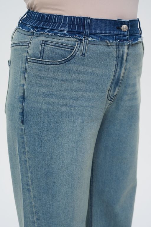 • Нижний край: Необработанный срез с легкой бахромой придает модели непринужденный вид.
