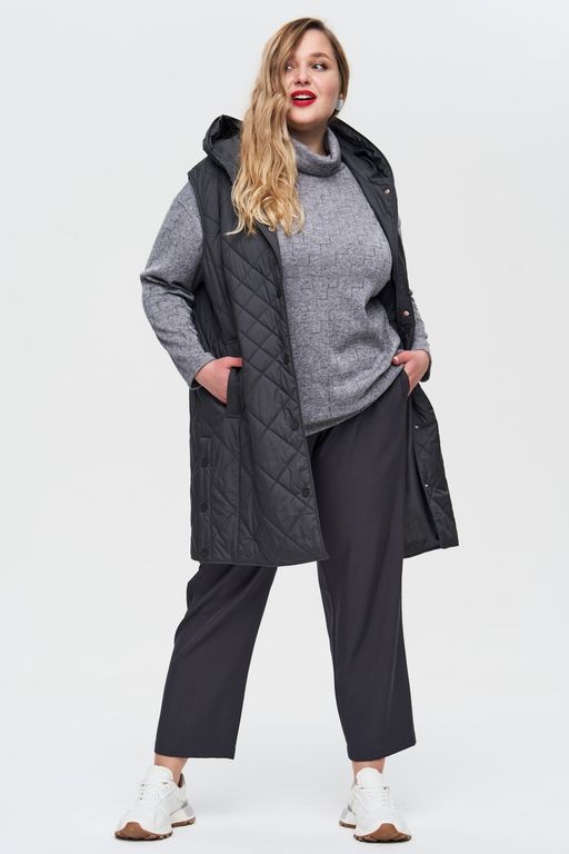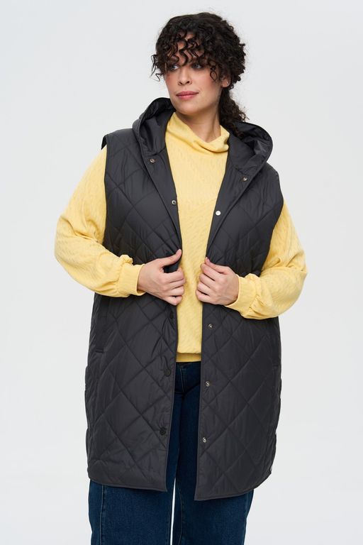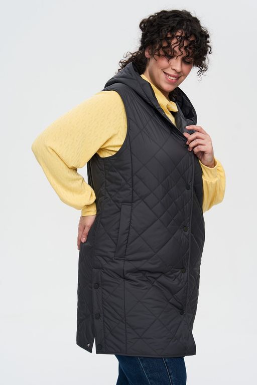 Жилет с капюшоном - идеальный вариант для всех активных девушек и женщин. Удлиненная модель обладает всеми необходимыми качествами, чтобы стать незаменимой вещью в Вашем гардеробе, обеспечивает комфорт и защиту от холодных осенних и весенних ветров. Модель гармонично смотрится с разнообразными предметами одежды и станет отличным дополнением для Ваших любимых вещей. Детали: центральная застежка на кнопках, капюшон, карманы в шве с листочкой. В боковых швах разрезы на кнопках, для свободы движения.