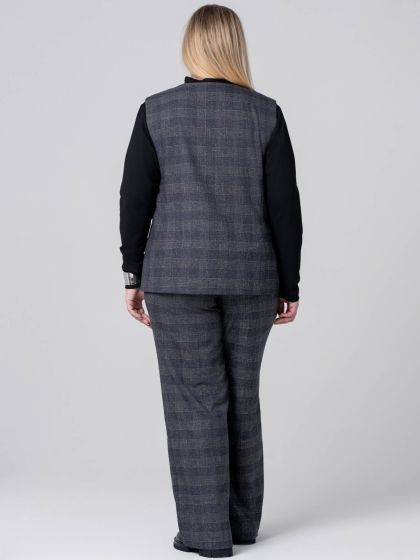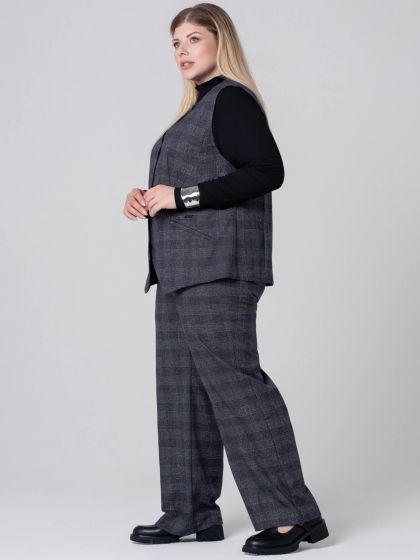 Эффектные брюки свободного силуэта выполнены из яркой однотонной смесовой ткани. Модель с застежкой-молнией. Эластичная тесьма проложена по поясу задних половинок брюк и достигает середины переда. По центральной части переда пояс имеет плотную основу. Силуэт брюк великолепно стройнит фигуру, придавая элегантность Вашему образу. Модель отлично комплектуется с блузами, жакетами и жилетами.