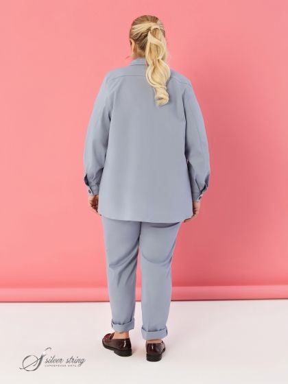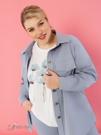 Молодежный жакет, стилизованный под «джинсовую рубашку», изготовлен из эластичной смесовой ткани, по структуре напоминающей деним. Модель прямого силуэта, с рубашечным воротником и застежка на пуговицы-болты. Рукав втачной, длинный. По низу рукава притачена манжета, обхват которой можно регулировать за счет парных пуговиц. В боковых швах обработаны разрезы. Такой жакет, вместо наскучивших курток, подойдет для создания разнообразных ансамблей и дополнит Ваш образ модной и стильной женщины.