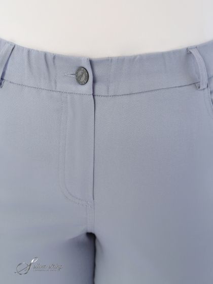 Брюки прямого силуэта изготовлены из эластичной смесовой ткани, по структуре напоминающей деним. Модель в стиле «5 карманов». Силуэт брюк великолепно стройнит фигуру. Их плюс в том, что они удачно сочетаются с совершенно любой обувью от таких модных нынче кед до изящных туфель-лодочек.