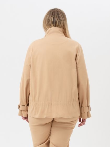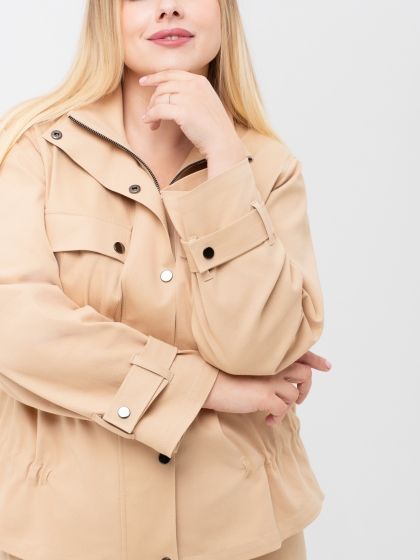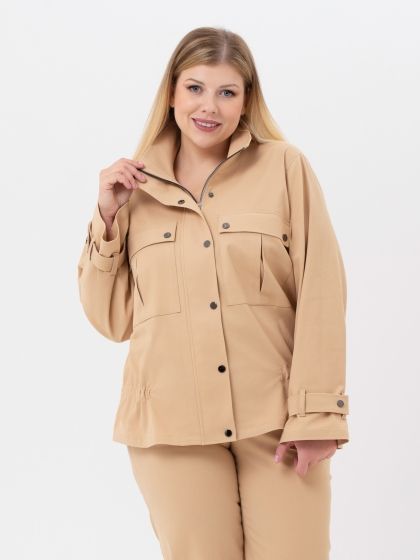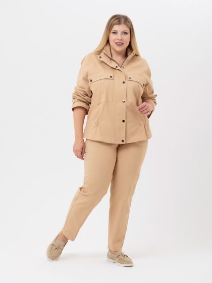Молодежный жакет, стилизованный под джинсовую куртку, выполнен из эластичной смесовой ткани песочного оттенка, по структуре напоминающей деним. Модель прямого силуэта, с втачным просторным рукавом. Крупные накладные карманы с клапанами, несомненно, являются акцентом модели. Благодаря отличной посадке и благородной расцветке, модель не оставит равнодушной ни одну представительницу прекрасного пола.