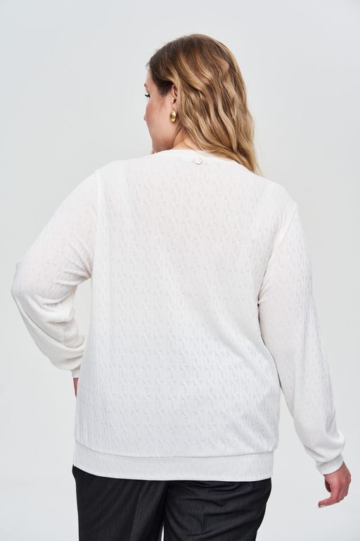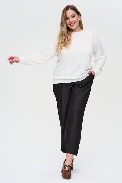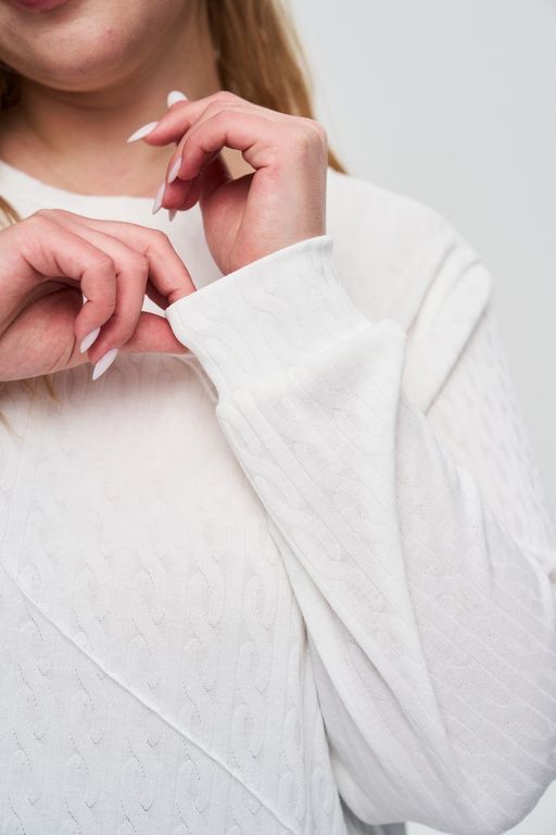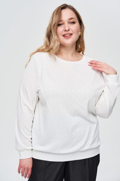 Удобный, стильный джемпер с не навязчивым жаккардовым рисунком. Теплый, приятный к телу материал согреет Вас в прохладную погоду. Джемпер свободного кроя. Длинные рукава на широкой манжете, по низу изделия манжета для регулирования длины, горловина округлая с планкой.Незаменимая, удобная вещь Вашего гардероба. Будет отличным дополнением к любому образу.