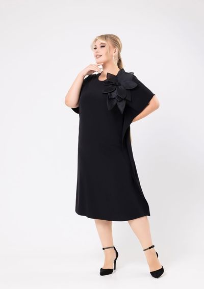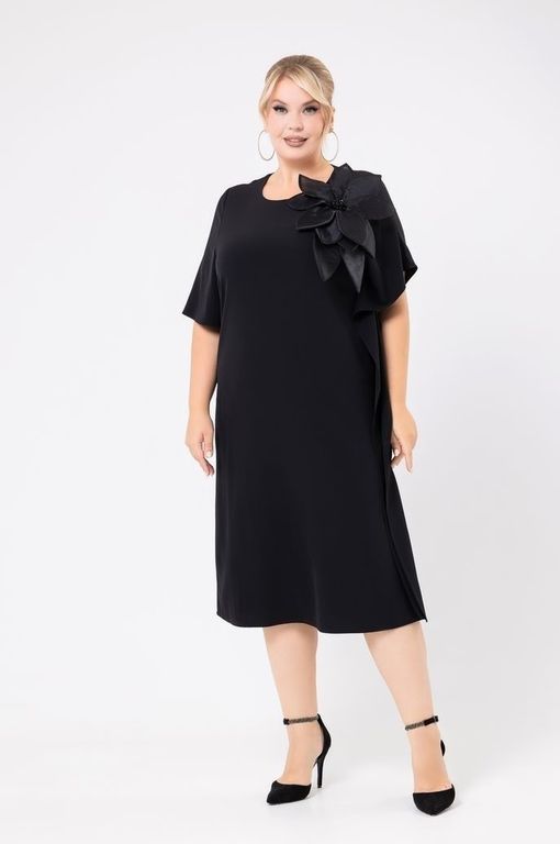 Нарядное платье прямого силуэта дополнено съёмным цветком.