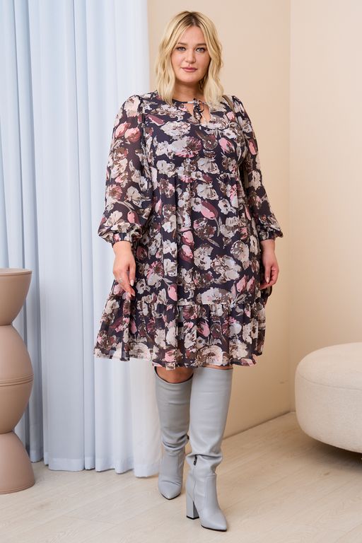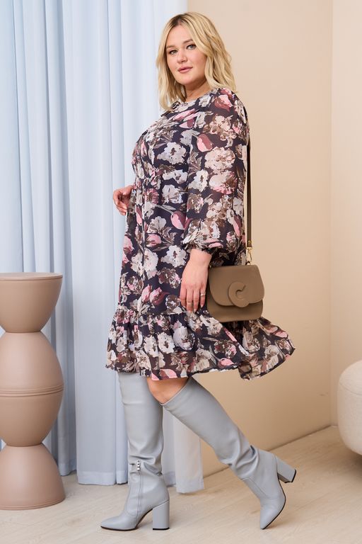 Эксклюзивное и воздушное платье модного кроя, выполнено из качественного шифона на подкладке, легкость ткани подарит Вам незабываемые ощущения комфорта и свободу движениям. Детали: длинные рукава с манжетом на резинке, плечевой пояс на месте, рукав широкий на сборке делая лаконичный и мягкий образ своей обладательницы. Пикантность образу придает фигурный вырез горловины, а утонченный силуэт делает фигурный подрез под грудью. Волан по низу сделает Вашу походку легкой и летящей.