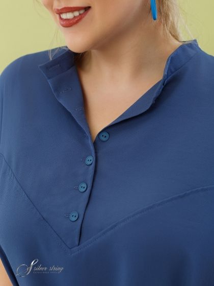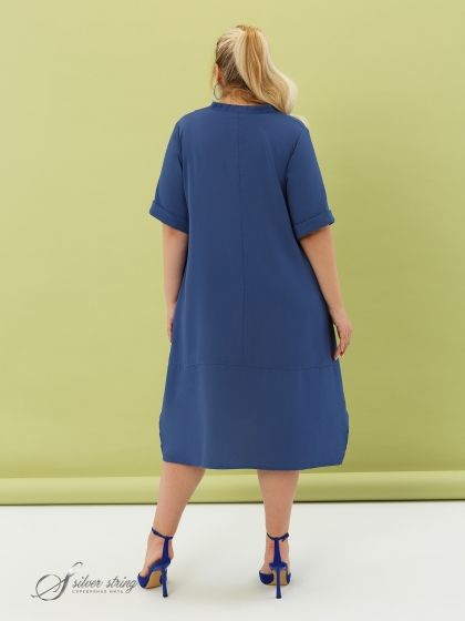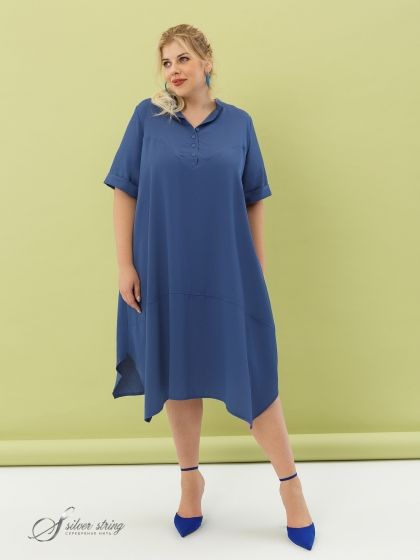 Стильное платье А-образного силуэта, длиной до середины икры, выполнено из фактурной смесовой ткани с «крэш» - эффектом. Втачной рукав длиной до локтя оформлен отворотом по низу. Воротник-стойка. На полочке и спинке расположены кокетки треугольной формы. Ниже уровня бедер проходит горизонтальная линия сечения, с расходящимися от нее разрезами, за счет чего линия низа приобретает ломаные очертания. На полочке обработана застежка на пуговицы, доходящая до уровня подреза кокетки. В боковых швах расположены карманы. Лето – это самая благодатная пора для платьев. Изысканная модель летящего силуэта по праву займет главное место в Вашем гардеробе.
