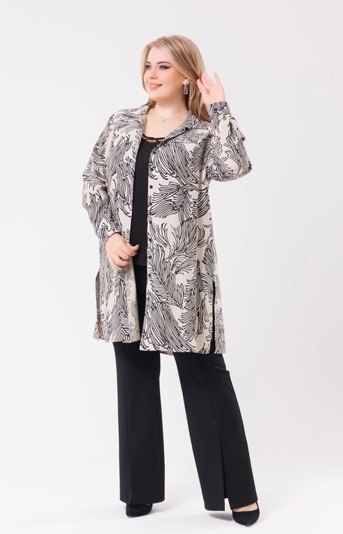 Вискозная рубашка силуэта "трапеция" с отложным воротником и разрезами по бокам.