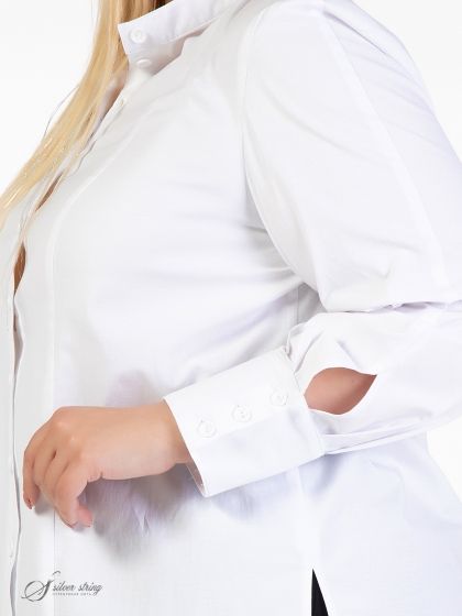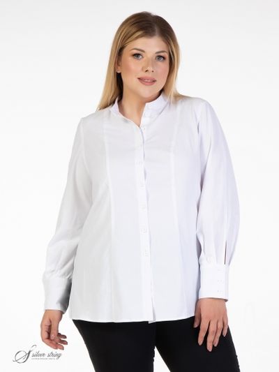 Современная блуза-рубашка прямого силуэта, в стиле «Casual», выполнена из смесовой натуральной ткани. Модель с воротником - стойкой и застежкой на пуговицы. Рукав втачной, длинный, с притачной манжетой по низу. Высота манжеты позволяет носить её на отворот, тем самым регулируя длину рукава. В боковых швах обработаны разрезы. Это классическая и, в то же время, универсальная модель, подходящая для разных случаев жизни. Она прекрасно впишется в Ваш гардероб и станет незаменимой при создании разнообразных комплектов.