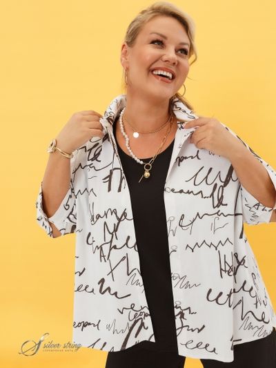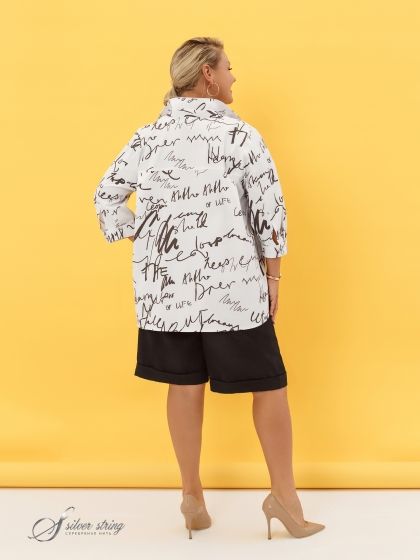 Эта стильная Блузка-рубашка выполнена из материала с высоким содержанием хлопка. Модель свободного силуэта с рубашечным воротником на стойке и втачным рукавом длиной 3/4 обеспечивает легкость и свободу движений. Застежка на пуговицы гарантирует удобство и комфорт. Кокетки полочки и спинки из ткани с абстрактным рисунком придают изделию индивидуальность. Уникальная линия низа, плавно удлиняющаяся от центра переда к середине спинки, подчеркивает изящество фасона. Эта Блузка-рубашка идеально подойдет для создания модного и расслабленного образа.