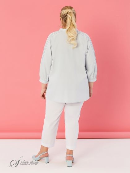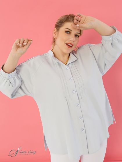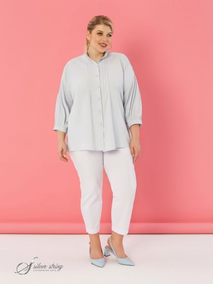 Эта эффектная Блузка в стиле «Casual» из однотонной ткани с высоким содержанием натурального волокна - идеальный выбор для создания расслабленного, но выразительного образа. Элегантный воротник-стойка, объемные рукава реглан, присобранные понизу и оформленные притачной манжетой, обеспечивают удобство и стиль. Регулировка обхвата манжеты с помощью пары пуговиц позволяет подобрать идеальную посадку. Тонкие защипы, застроченные на полочке и по верху рукава, добавляют блузе изысканности и женственности.