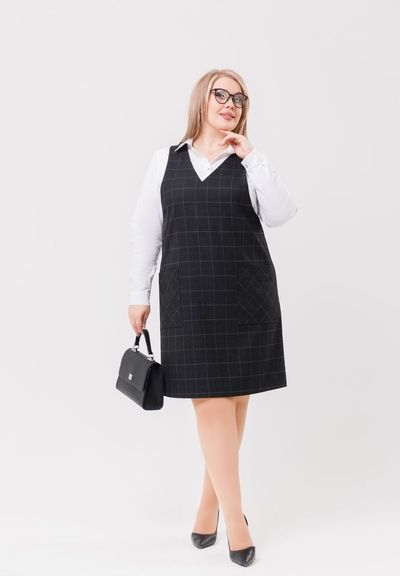 Сарафан прямого силуэта с карманами.