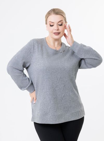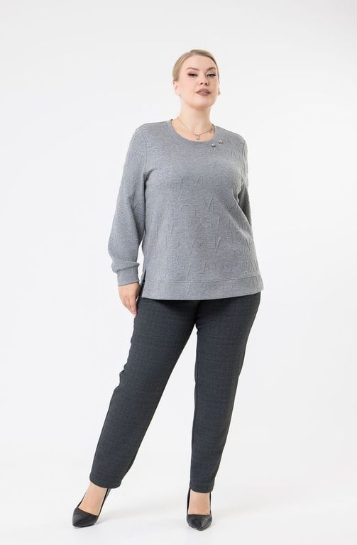 Трикотажная туника прямого силуэта, рукава на манжетах. Дополнено декоративным элементом.