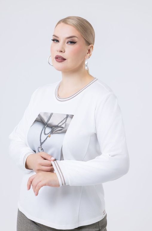Свитшот прямого силуэта выполнен из вискозного полотна. Рукав на манжете