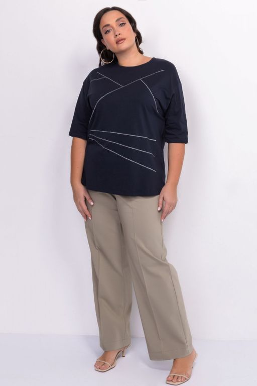 Свитшот прямого свободного силуэта из премиального хлопкового полотна с эластаном. Оригинальный графичный принт, имитация серебряных страз. Длина изделия 69 см.
