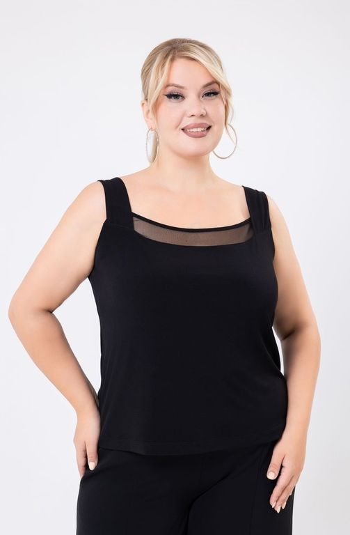 Топ прилегающего силуэта выполнен из трикотажного полотна, вставка из сетки.
