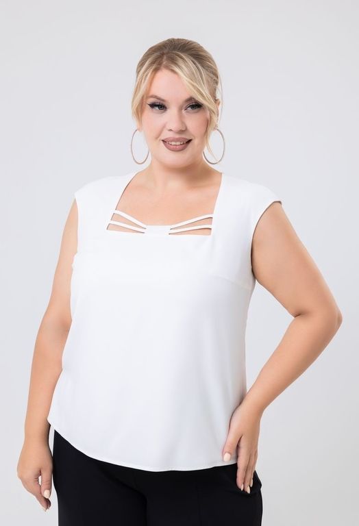 Топ прилегающего силуэта, спущенная линия плеча, боковые разрезы.