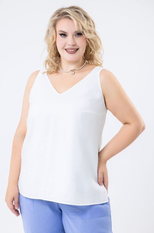 Топ прямого силуэта выполнен из ткани "Каролина" с эффектом "крэш". Небольшие разрезы по бокам. Перед двойной с подкладом.