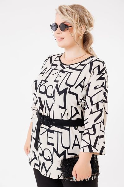 Блуза прямого силуэта, рукав цельнокроенный длина 7/8, небольшие разрезы по бокам, пояс в комплекте.