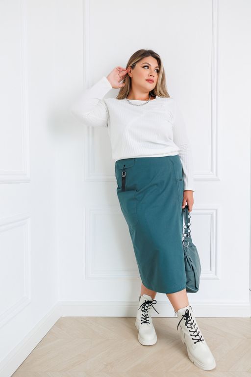 Джинсовая юбка слегка расклешённая к низу, спинка на резиночке.
