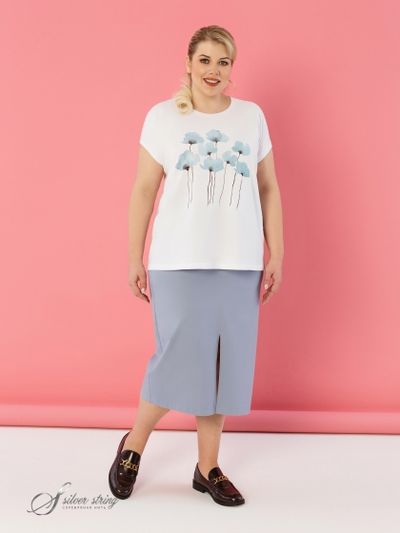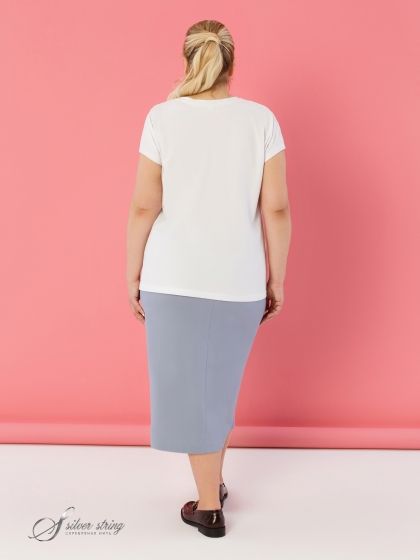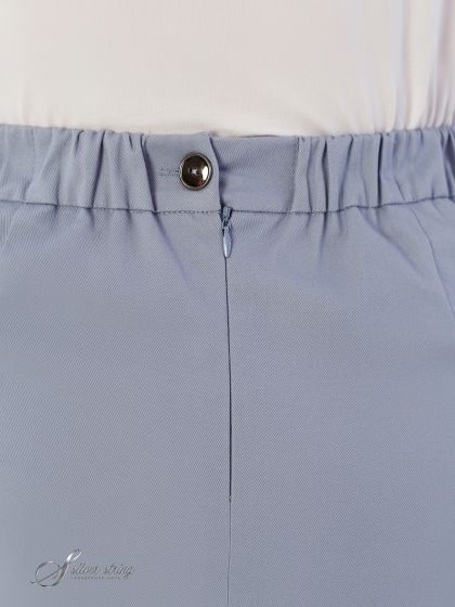 Современная юбка, длиной до середины икры, изготовлена из эластичной смесовой ткани, по структуре напоминающей деним. Модель прямого силуэта, суженная к низу. По центру переда юбки проходит вертикальный шов, который оканчивается разрезом. На передних полотнищах юбки обработаны подкройные карманы. По поясу спинки проходит эластичная тесьма-резинка, передняя часть пояса имеет плотную основу. Застежка на молнию расположена в центральном шве спинки. Юбка - это must have в любом модном гардеробе сезона, его главная героиня. Удлиненные юбки особенно гармонично смотрятся в монохромных образах, когда они не контрастируют с верхом, а совпадают с ним по цвету. Какую обувь выбрать к длинной юбке каждая модница решает сама. Это могут быть изящные остроносые туфельки или спортивные кроссовки.